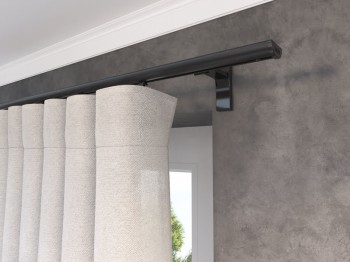 Szyna aluminiowa Forest DS w kolorze czarnym to idealne połączenie najwyższej wytrzymałości i nowoczesnej estetyki. System **DS (Double Sliding)** został zaprojektowany do instalacji Heavy Duty, doskonale radząc sobie z ciężkimi i wysokimi zasłonami w dużych przeszkleniach.
